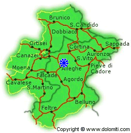 Per raggiungere l'albergo si esce dall'aautostrada vicino a Longarone ,si gira a sinistra per la val di Zoldo si prosegue fin dopo il passo Staulanza ed il primo paese è il nostro oppure dalla Val Badia per il passo di Campolongo , da Cortina per il passo Giau ed infine per la statle agordina , prima di Caprile si gira a destra si percorre la bassa Val Fiorentina.